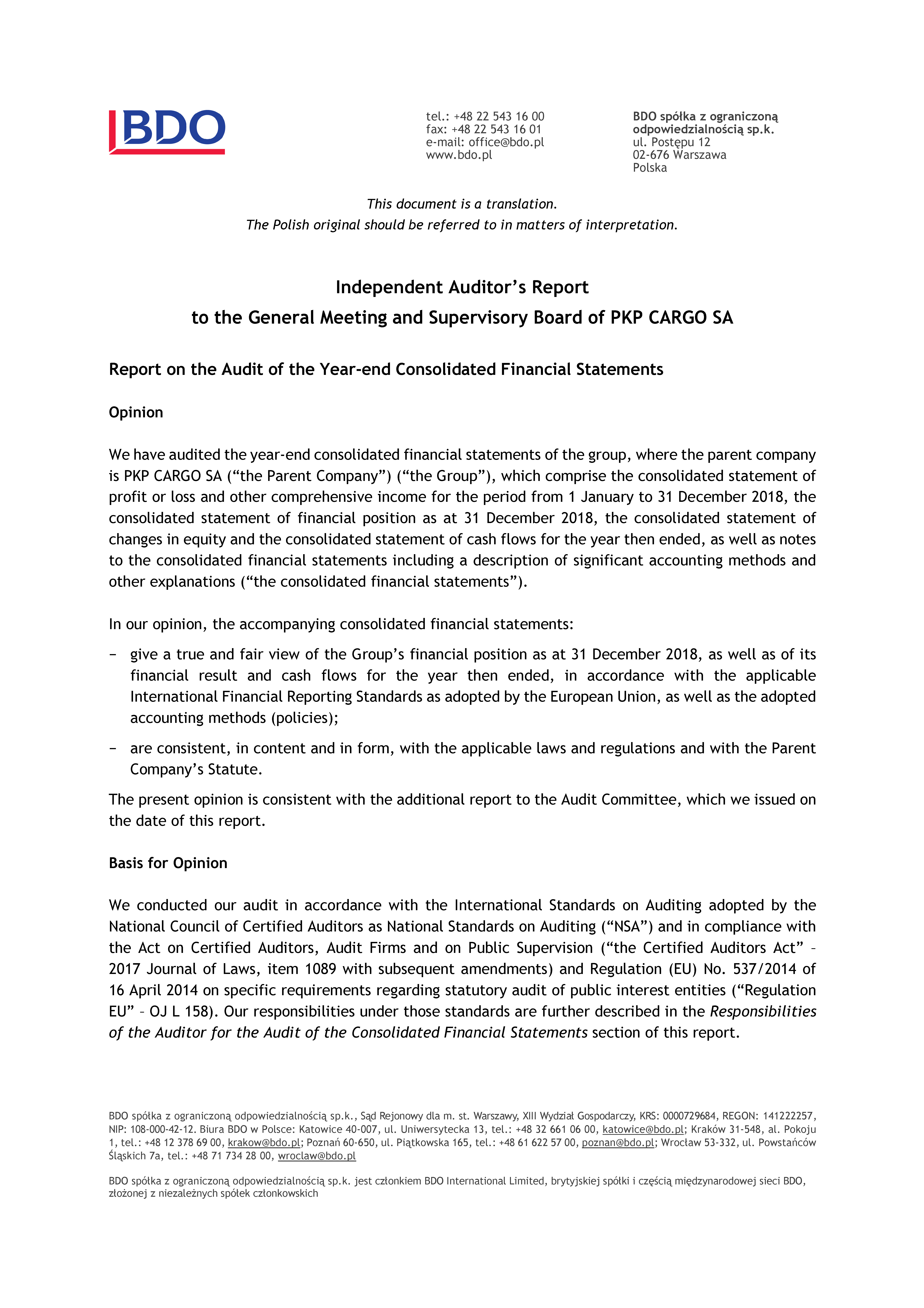 Summary of PKP CARGO Group 2018 results